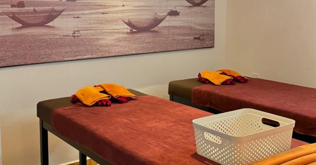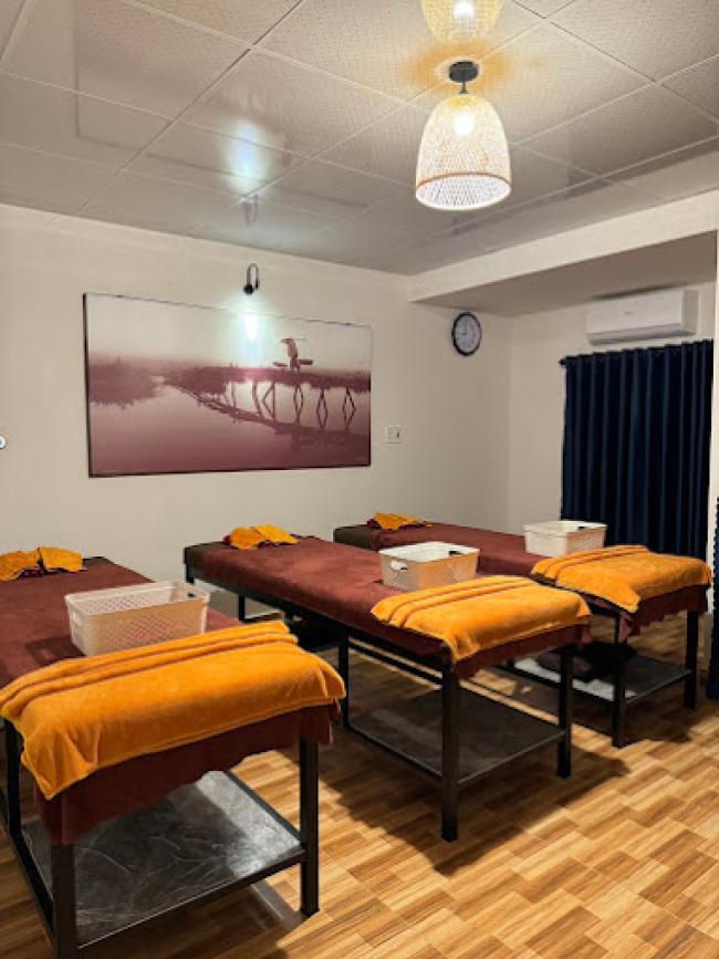 - THAI MASSAGE: Được thực hiện bằng cách sử dụng các kỹ thuật cử động và ép nhấn để giúp giảm căng thẳng, đau đớn và cải thiện sức khỏe chung và tập trung vào việc mở rộng các khớp và giãn cơ để giúp cơ thể cảm thấy thoải mái hơn.
